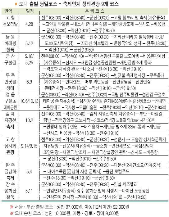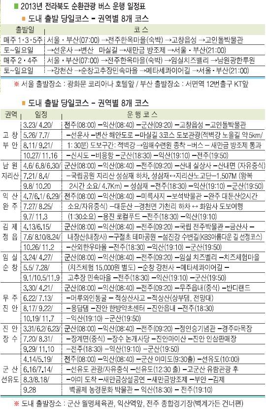 만원으로 전북 구석구석을 하루 당일치기로 즐길 수 있는 전북순환관광버스는 홈페이지(http://www.nbtour.co.kr)에서 일정 및 예약 사항을 확인하면 된다.