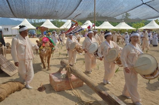 전통 농경문화인 들녘의 소리를 재현한 '영호남과 함께 하는 제11회 순창농요금과들소리 현장공연'이 9일 금과들소리전수관 야외광장에서 펼쳐졌다.
