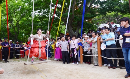 ▲ 13일 제55회 전주단오제 행사에 참석한 시민들이 민속놀이 경연장에서 그네를 뛰며 단오풍습을 즐기고 있다. 추성수기자 chss78@