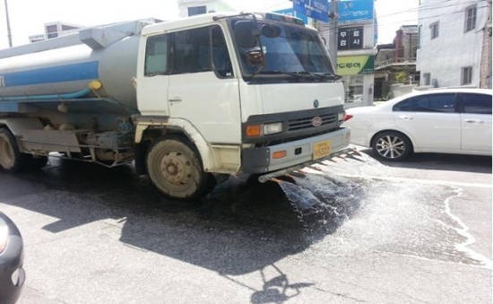 익산시는 지난 19일부터 21일까지 살수차를 동원, 주요 간선도로에서 아스팔트 도로 복사열을 줄이기 위한 물 뿌리기 작업을 실시했다. 사진제공=익산시
