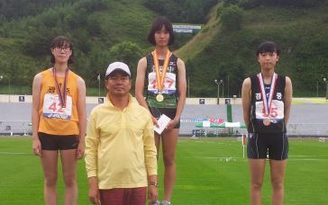 ▲ 제11회 전국중고등학교육상경기대회에서 2관왕에 오른 전라중 신수영 선수(사진 뒷쪽 가운데).