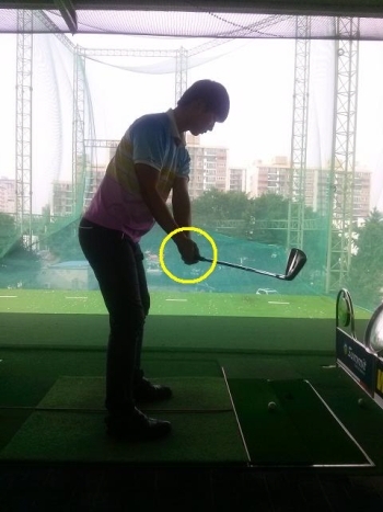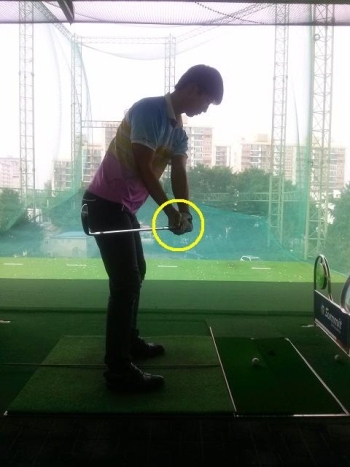 테이크백의 손의 위치는 너무나 중요한 부분이다. 클럽의 헤드가 사진1과 같이 너무 안쪽으로 들어가거나 사진2와 같이 바깥쪽으로 나가게 되면 스윙 플레인에서 벗어나 안정되고 좋은 스윙을 만들기 어려워진다. 따라서 테이크 백에서 클럽의 위치는 사진3과 같이 옆에서 볼 때 클럽헤드와 손의 위치가 사진3의 원 안에 들어가야 좋은 스윙 플레인을 만들기 쉬우며, 톱스윙과 자연스럽게 이어져 좋은 결과를 기대해도 된다.