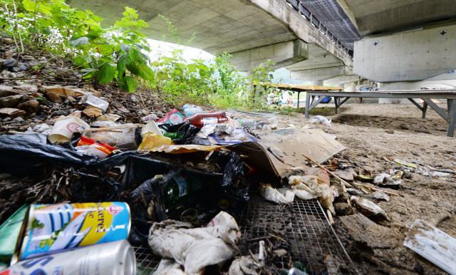 휴가철을 맞아 많은 시민이 여행을 떠난 가운데 지난 31일 전주 원당동 한 다리 밑에 시민이 버리고 간 쓰레기가 쌓여 있다.