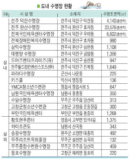 도심 속 피서공간으로는 수영장만한 장소가 없다. 전북지역에는 총 21개의 크고 작은 실내외 수영장이 있다.