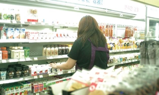 ▲ 방학을 맞아 전주시내 한 편의점에서 아르바이트를 하는 대학생이 진열대의 물품을 정리하고 있다.