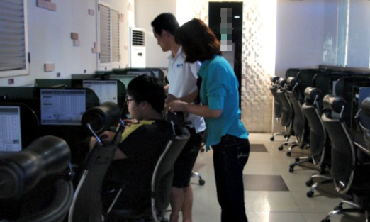 ▲ PC방에서 근무하는 아르바이트생이 이용객과 이야기를 나누고 있다.