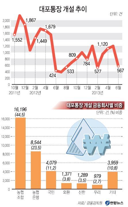 하지만 대포통장 개설 규모는 올해 1월 다시 1천195건으로 늘어나는 등 올해 상반기에는 월평균 925건에 달하고 있다.