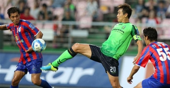 ▲ 7일 전주월드컵경기장에서 열린 2013 하나은행 FA컵 전북 현대와 수원 FC의 8강전에서 전북 이동국(가운데)이 패스하고 있다. 연합뉴스
