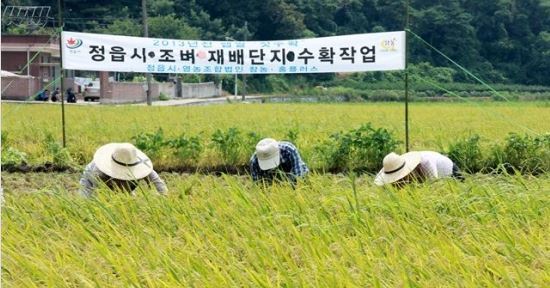 정읍시농업기술센터 관계자는"올여름 폭염으로 쌀 생산에 차질이 빚어질까 우려됐지만 다행히 이삭이 제대로 여물어 5.5㏊의 논에서 40㎏들이 830여포대를 수확해 좋은 작황을 보였다"고 밝혔다.