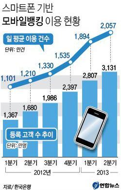 스마트폰 기반 모바일뱅킹 등록고객이 3천131만명으로, 324만명(11.5%) 늘어난 데 따른 것이다.