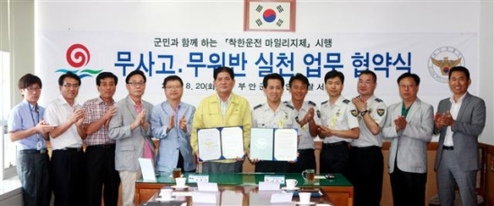 김호수 부안군수와 남기재 부안경찰서장은 20일 군청 3층 간부회의실에서 '착한운전 마일리지제' 업무 협약을 체결했다.