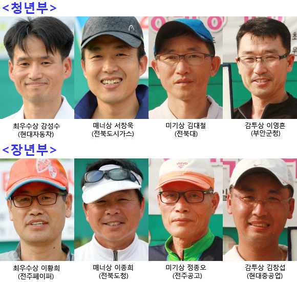 장년부에서는 △최우수상 이황희(전주페이퍼) △매너상 이종철(전북도청) △미기상 정종오(전주공고) △감투상 김창섭씨(현대중공업)가 각각 수상했다.
