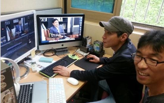 ▲ 휴이미디어 한석균 대표와 윤창우 프로듀서가 방송으로 송출할 프로그램을 편집하고 있다.