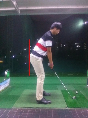 사진에서 보듯이 사진1은 어드레스에서 힙 뒤로 내려진 선은 척추각을 만들어낸다.