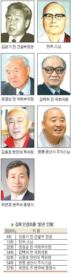 이와 함께 김용호(52회) 한민대 학과장, 원행(54회) 금산사 주지스님, 최연호(57회) 주 벤쿠버 총영사 등이 학교를 빛냈다.