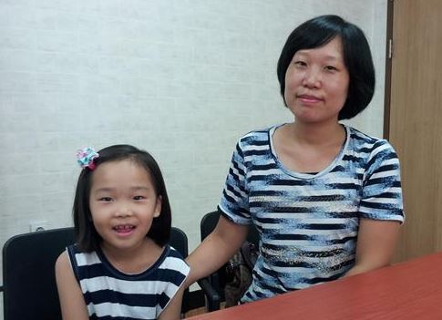 ▲ 엄향란씨가 여덟살 딸과 사진을 찍고 있다.