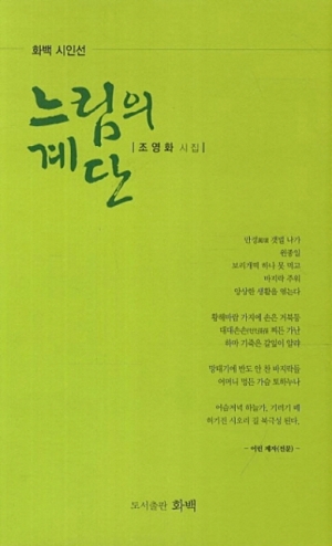 '느림의 계단'에는 '화해'하고 난 뒤 서정적인 정서가 가득하다. 시인 강기옥은 시집의 해설에 부쳐 조영화의 시세계를 '등로주의(登路主義)적인 삶의 서정적 이미지'라고 압축했다. 서정주의 속에 깊은 내면의 가치와 함께 입체적인 주제가 담겨있다고 풀이했다.