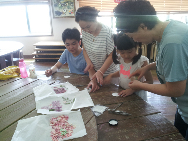 너른 운동장 가운데에는 조형물들이 제법 멋스러운 자태를 뽐내며 앉아 있다. 운동장 끝 화단, 여느 학교에나 있을 법한 여러 동물상들과 수줍은 소녀상이 반긴다. 건물 안으로 들어가 신발부터 벗는다. '커뮤니티비즈니스센터', 공정여행사업단인 '마을통', 로컬푸드사업단인 '건강한 밥상', 주민을 위한 문화활동을 지원하는 '공감문화센터' 등이 한 공간에 있다. 이 건물에 가장 먼저 입주한 커뮤니티비즈니스센터를 찾았다. 다양한 연구용역을 진행하고 있지만 이곳에서 가장 중점을 두는 부분은 바로 교육이다. 귀농귀촌을 준비하는 사람들에게 농사 이외의 농촌에서 가능한 일들을 소개하고 농촌살이에 필요한 것들을 교육한다. 목공수업, 텃밭 가꾸기 등 다채로운 교육을 진행하고 마을공동체사업을 하는 주민을 상담하는 일도 한다. 그러고 보니 1층에서 2층으로 이어진 계단 벽면에는 마을별로 그 마을 주민이 직접 쓴 사업기획서가 가득 채워져 있다. 운동장 가장자리. 저마다 다른 사연을 간직한 사람들이 농촌에서 살기 위해 가꾼 텃밭에는 올망졸망 열매가 달렸다. 토마토, 가지, 고추, 색색으로 그 빛깔이 화사하다.