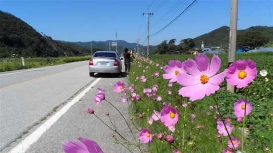 최근 들어 코스모스가 만발하면서 길을 오가는 관광객들이 청명한 가을하늘과 형형색색의 아름다운 코스모스를 벗 삼아 사진을 찍으며 행복한 시간을 보내고 있다.