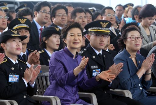 박 대통령은 "바다에서의 안전을 지키는 일도 해양강국으로 가기위한 중요한 과제"라며 "바다에서의 위험 요인을 선제적으로 제거해 안심하고 바다를 이용할 수 있도록 하는 역할이 해양경찰에게 주어져 있다"고 강조했다