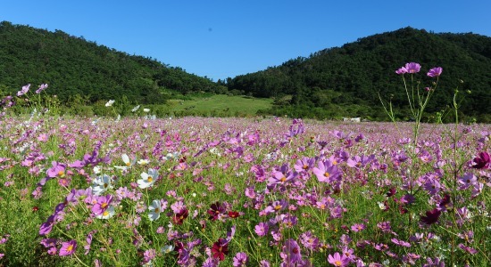 웅포 곰개나루 캠핑장 일원이 코스모스 꽃 물결로 장관을 연출하고 있다. 금강을 배경으로 4km에 걸쳐 곱게 핀 코스모스 꽃길은 흰색·연분홍·진분홍 등 다양한 색깔로 가을바람에 한들한들 자태를 뽐내며, 마치 수채화를 그린 듯 멋진 풍경을 이루고 있다.