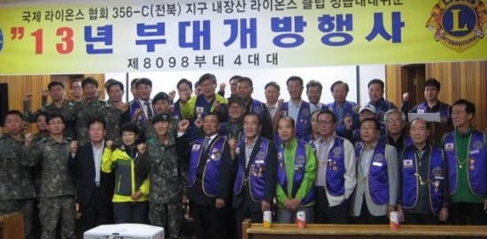 이날 8098부대 4대대(대대장 고병호 중령)를 찾은 내장산라이온스클럽 30여명의 회원들은 장병들의 체력증진을 위한 농구대와 먹거리및 기념품등 200만원 상당의 물품을 전달하고 장병들과 함께 즐거운 시간을 가졌다.