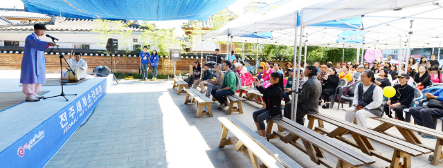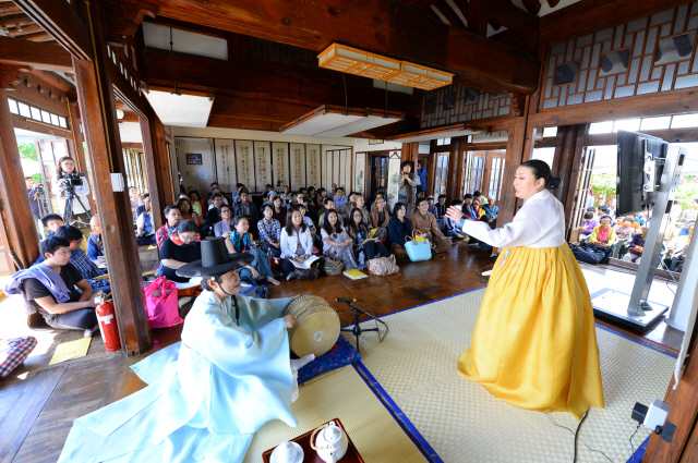 관람석은 나이가 지긋한 노신사부터 가족단위 나들이객 등으로 100여석이 가득 찼다. 경연이 중반에 이르자 한옥마을을 찾은 관광객의 발길이 판소리를 따라와 서서 지켜보는 관람객도 늘었다.