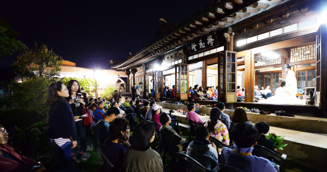 △공연장 중심축 균형 필요= 한국소리문화의전당과 한옥마을로 나눠 진행된 소리축제는 공연장별로 집객의 차이가 눈에 띄었다. 한옥마을의 경우 3일 개천절과 주말을 맞아 관광객이 몰렸지만 소리문화의전당의 경우 일부 낮 시간대 공연에는 다소 한산한 모습을 보이기도 했다. 한옥마을의 향교, 학인당 등에서 주요 공연이 이뤄져 상대적으로 공연장의 다른 축인 소리문화의전당의 콘텐츠가 미흡해 보강의 필요성도 제기됐다.