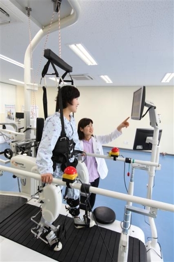 ▲ 원광대병원 환자가 로봇재활치료기로 재활운동을 하고 있다.