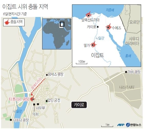 가장 큰 충돌은 지난 7월 군부 쿠데타로 실각한 무함마드 무르시 전 대통령을 지지하고 군부에 반대하는 시위대가 이날 카이로 민주화의 성지 타흐리르 광장으로 행진하면서 촉발됐다. 연합뉴스