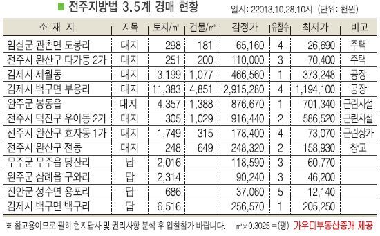 △김제시 제월동 (공장) = 본 건은 월랑마을 남측 인근에 위치하고 주위는 시외곽 전·답 및 자연부락이 혼재한 농경지역으로서 주변으로 중·소규모의 자연부락이 산재한다. 북서측으로 아스팔트포장 왕복 2차선 도로 및 남측으로 노폭 약 6~8m의 아스팔트 포장도로 각지에 접하여 제반차량의 통행 및 출입이 자유롭고 시내버스 승강장이 인근에 소재하며, 시중심지까지 대중교통편 이용 약 15분 거리로서 제반교통여건은 보통시된다. 부정형 토지로서 인접지와 대체로 등고 평탄하고 창고 용지 및 공장용지로 이용중이다. 현재 휴업상태로서 임대관계는 미상이며, 문화재보존영향 검토대상구역(전라북도지정문화재보호조례)이다.