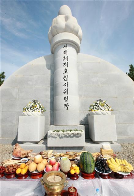 이 가운데는 58명의 위도면 주민이 포함돼 있으며, 이를 추모하기 위해 사고해역을 정면으로 바라보는 있는 진리 연못 끝에 1995년도에 위령탑을 건립하고 매년 10월 10일 292명의 영령의 명복을 빌기 위해 위령제를 개최하고 있다.
