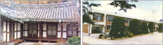 ▲ 100여년 전 양사재 모습(왼쪽)과 현재의 전주초 교정.