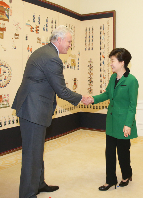 박근혜 대통령은 24일 청와대에서 제프리 이멜트 제너럴 일렉트릭(GE)사 회장을 접견, 항공·헬스케어 분야에서의 협력방안에 대해 공감대를 형성하고, 혁신과 창조경제 추진전략 등에 대해 폭넓은 의견을 나눴다.