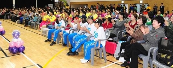▲ 3일 2013 고창군수배 전국라인댄스대회가 고창실내체육관에서 열려 참가자들과 내빈들이 대회를 축하하고 있다.