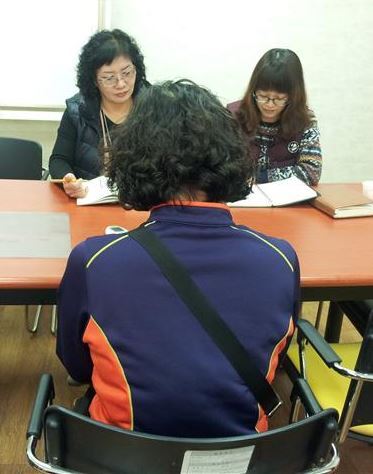 ▲ 한 결혼이민자가 외국인 신분의 가족에 관한 치료 문제를 해결하기 위해 전문가와 상담하고 있다.