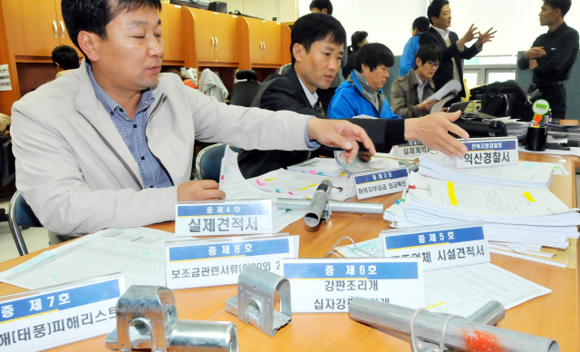 ▲ 5일 전북지방경찰청 브리핑룸에서 익산경찰서 관계자들이 시설하우스 공사비를 부풀려 보조금 16억원을 타낸 시설업자를 검거하고 증거자료를 공개하고 있다. ·추성수기자chss78@
