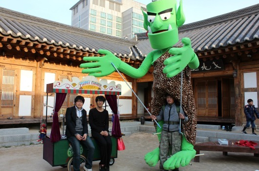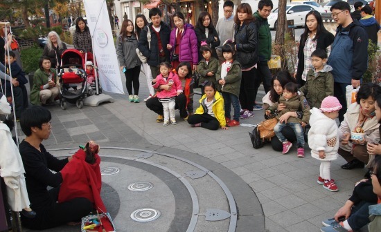11월 한옥마을을 지나는 바람은 상냥하지 않았고 그곳을 지나는 사람들의 눈길을 붙드는 것은 너무 많았다. 공연이 시작되자 먼저 알아챈 것은 아이들이었다. 아이들이 걸음을 멈추었으므로 아이의 손을 잡은 부모들도 그냥 지나칠 수 없게 됐다. 인형들이 하나둘 아이들 앞에 나왔다. 짧게는 3~4분, 길게는 5~6분 정도의 이야기를 담은 박규현 씨의 인형극이 이어졌고 마지막으로 김호 씨의 마술 공연이 펼쳐졌다. 눈을 반짝이며 마술사의 손놀림을 쫓는 아이들과 어른들. 그때 극단 '별'의 맏형 송이석 씨는 4m가 넘는 도깨비 인형을 짊어지고 공연장 주변을 돌고 있었다. 공연을 마친 박규현 씨에게 물었다. 찬바람 막아주는 공연장을 떠나 밖으로 나올 결심을 한 것은 무엇 때문이냐고.
