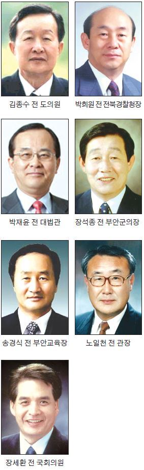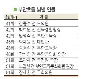 총동문회를 통해 파악된 역대 동문들도 40~50회 경계에 있는 졸업생들에 그쳤다. 그럼에도 정계·법조계·교육계에 진출한 이들은 꽤 많았다. 이 시기에 정계에 진출한 김종수 전 도의원(41회), 장석종 전 부안군의회 의장(48회), 장세환 전 국회의원(51회)이 눈길을 끈다. 장세환 전 의원과 오랜 지기인 노일천 전 관장은 “장세환 전 의원은 부안초 5학년 재학 도중 전학을 갔으나 부안초 졸업생으로 간주해도 무방하다”고 했다. 법무법인 바른의 고문변호사로 활동 중인 박재윤 전 대법관(45회)과 조광제 전 국정원 국장(51회), 박희원 전 전북경찰청장(42회)이 법조계·행정계의 ‘파워 인맥’이다.