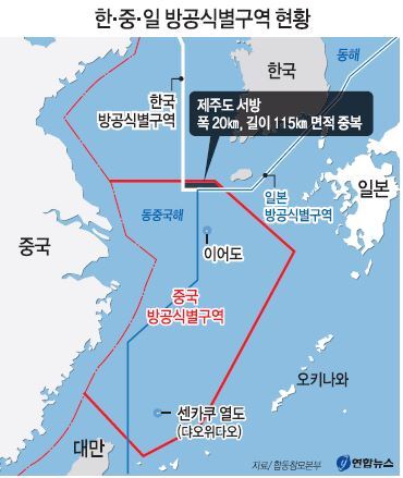 군의 한 소식통에 따르면 24일 중국이 선포한 방공식별구역에는 이어도 상공도 포함돼 있는 것으로 전해졌다. 연합뉴스
