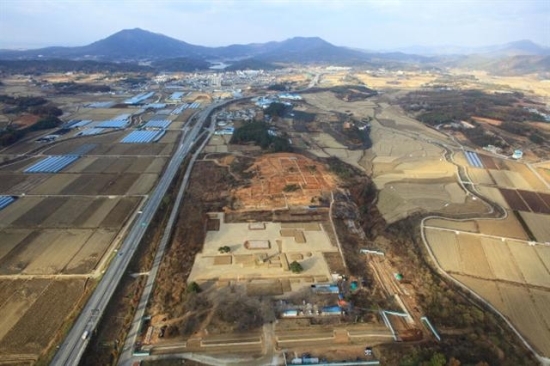 ▲ 익산 왕궁리 유적 전경(사진 하단이 남쪽).