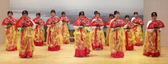 ▲ 개관 8주년을 기념해 무주종합복지관마련한 작품 발표회에서 전통춤 공연이 열리고 있다.