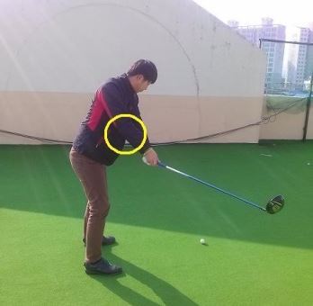 사진1은 일반 아마추어의 다운스윙 동작이다. 사진2와 사진3과의 동작과는 많이 다르다는 것을 확인할 수 있다.