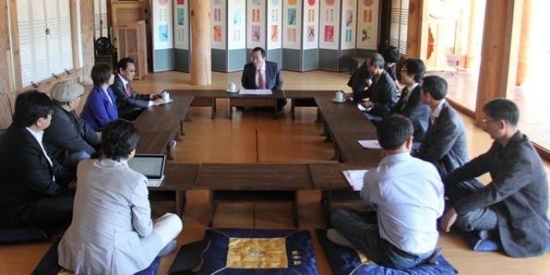▲ 지난 10월 3일 전주시를 방문한 중국영화제작자 협회 관계자들이 송하진 시장 등과 이야기를 나누고 있다.