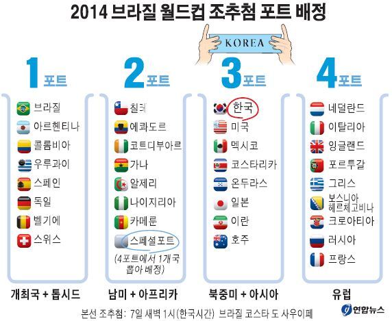 2014 브라질 월드컵 조추첨 방식과 포트 배정이확정됐다.