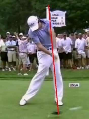사진2는 아담 스콧이고, 사진3은 로이 맥길로이다. 사진1과 비교해보면 확실히 알 수 있다. 임팩트 순간에 왼팔과 클럽의 샤프트를 연결하는 선이 일직선으로 쭉 뻗어서 임팩트가 이루어지는 것을 볼 수 있다.