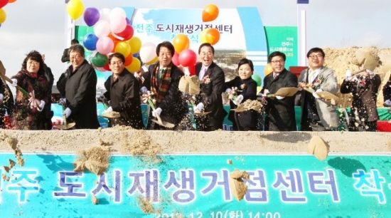 도심 노후주거지의 도시 기능 회복 등 도시재생의 중심적 역할을 담당하게 될 전국 최초의 도시재생 거점센터가 10일 전주시 노송동 현지에서 첫 삽을 떴다.
