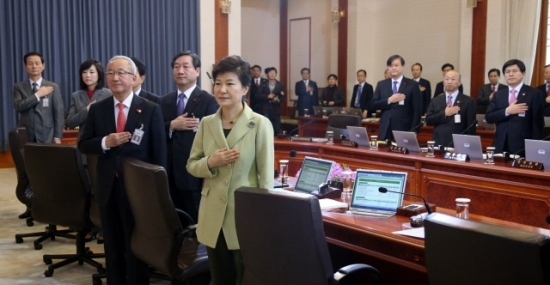 박 대통령은 이어 “한반도를 비롯한 동북아의 정세가 급변하고 있고 북한의 위협과 정세변화도 긴장을 늦출 수 없는 위중한 상황”이라며 “세계경제의 불확실성도 지속되고 있고 최근 회복기미를 보이는 우리 경제도 지금 이 불씨를 살려가지 못한다면 경제가 다시 가라앉고 국민의 고통이 커질 수밖에 없는 상황”이라고 말했다.