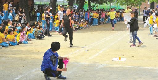 ▲ 순창초 가족한마당 달리기 대회에서 참가자들이 힘차게 달리고 있다.