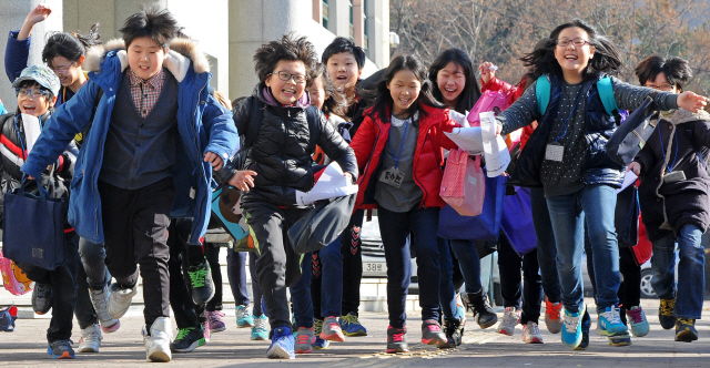 도내 초등학교들이 겨울방학에 들어간 24일 전주 서일초등학교 학생들이 가방을 메고 환한 웃음을 지으며 교문을 나서고 있다.